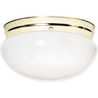 2 Light - 12" Flush with White Glass - Polished Brass Finish