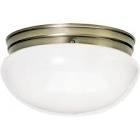 2 Light - 12" Flush Large with White Glass - Antique Brass Finish