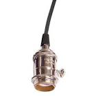 Medium base lampholder; 4pc. Solid brass; prewired; On/Off; Uno ring; 10ft. 18/2 SVT Black Cord; Polished nickel finish