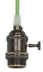 Medium base lampholder; 4pc. Solid brass; prewired; On/Off; Uno ring; 10ft. 18/2 SVT Light Green Cord; Dark antique brass finish
