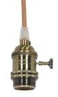 Medium base lampholder; 4pc. Solid brass; prewired; On/Off; Uno ring; 10ft. 18/2 SVT Gold Cord; Antique brass finish