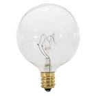 60 Watt G16 1/2 Incandescent; Clear; 2500 Average rated hours; 642 Lumens; Candelabra base; 130 Volt; Shatter Proof