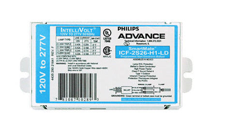 Ballast- Operates (1 or 2) 26 Watt (1) 32 Watt or (1) 42W 4 pin CFL 120/277 Volt Programmed Start