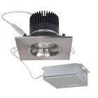 12 watt LED Direct Wire Downlight; Gimbaled; 3.5 inch; 3000K; 120 volt; Dimmable; Square; Remote Driver; Brushed Nickel
