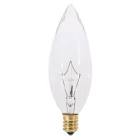 40 Watt BA9 1/2 Incandescent; Clear; 1500 Average rated hours; 384 Lumens; Candelabra base; 120 Volt; Shatter Proof